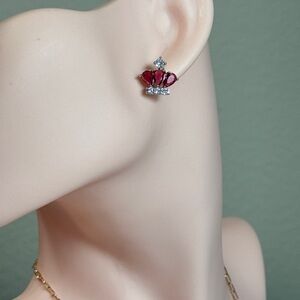 ⚜️ Chic Red and Silver Crown Earrings With Cubic Zirconia 💎❤️🔥