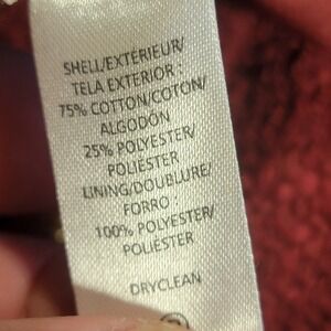Fabric: Shell 75% Cotton / 25% Polyester. Lining 100% Polyester.