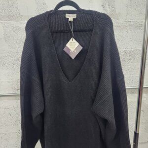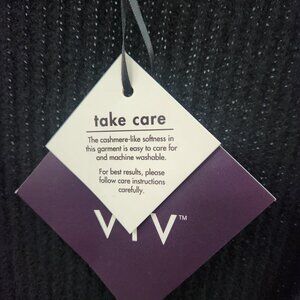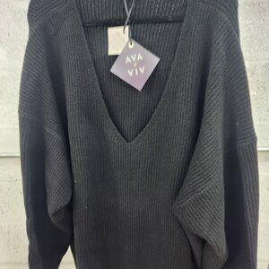 Ava & Viv black deep V-neck sweater in a cozy ribbed knit, size 4X, new with tags. Tunic-length silhouette with drop-shoulder sleeves and an easy, relaxed fit that drapes beautifully. The knit has a soft, cashmere-like feel and subtle texture that can be dressed up or down.