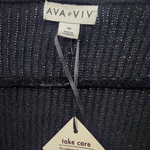 NWT AVA & VIV Black Deep V-Neck Ribbed Sweater 4X
