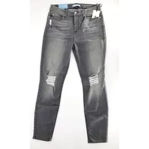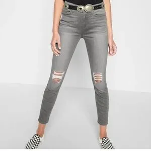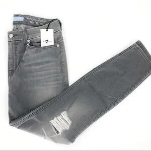 7 For All Mankind The Waist Rise Ankle Skinny. NWT. 7’s Classic High highrise skinny in a medium grey wash featuring distressed knees. Perfect for pairing with chuncky sweaters and booties all season long