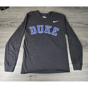This Duke University shirt is a small gray long sleeve Nike tee designed in an athletic cut. Officially licensed by Nike, this shirt features the Duke Blue Devils team logo, perfect for basketball fans of the team. Made in Honduras, this unisex adult shirt is ideal for wearing during the regular season games, with a capacity of less than 8 oz. Show your support for the Duke Blue Devils with this stylish and comfortable shirt.