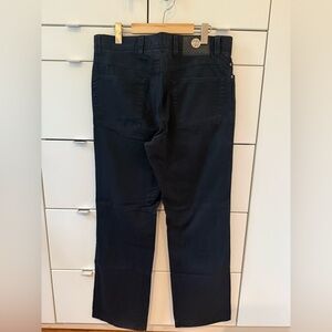 Classic and versatile lightweight black pants from Cortigiani, crafted in Italy with 100% cotton for comfort and style. Waist measures 18 inches, inseam 32 inches. Timeless piece that’s easy to dress up or down.