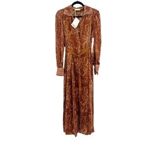 Ulla Johnson Thalia Long Sleeve Velvet Burnout Shirtdress Sienna Size 6 NWT