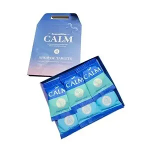 SeasonBliss Calm shower Steamers in a soothing blue and pink packaging. Perfect for a relaxing shower experience.