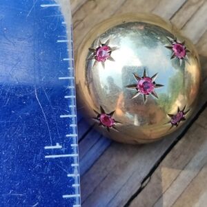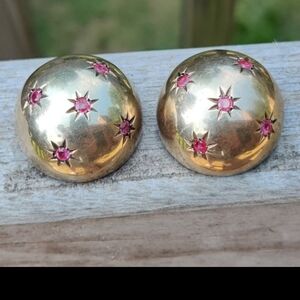 Very rare very old unsigned Coro gold plated large sterling silver dome earrings with genuine rubies.