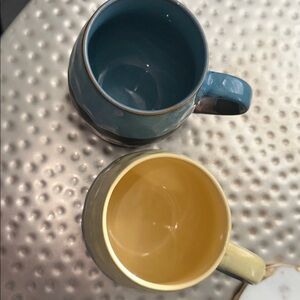 Enhance your dining experience with this elegant set of ceramic mugs. Featuring a soothing blue and vibrant yellow, these mugs are perfect for any occasion. Enjoy your favorite beverages in style.