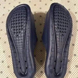 Stylish dark blue slides with signature logo. Perfect for everyday comfort.