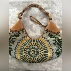 Stylish hobo bag featuring a vibrant floral pattern. Perfect for adding a pop of color to any outfit.
