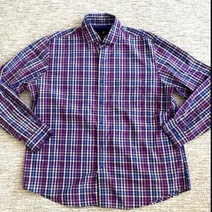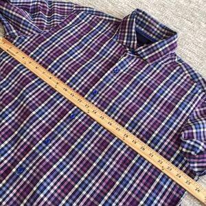 Mens Dress Shirt Bundle Size 17 Long Sleeve Plaid & Gingham Check Blue & Purple