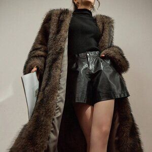 Stay warm and stylish this winter with this casual, hooded, long faux fur coat. Featuring a loose fit and midi length, it's perfect for braving the cold in the winter. The plain, brown design ensures a versatile look that can be dressed up or down.