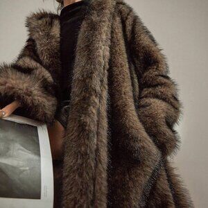 Brown Casual Women's Hooded Long Faux Fur Coat