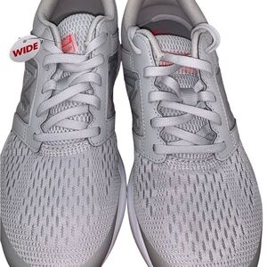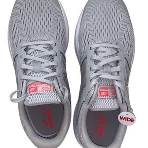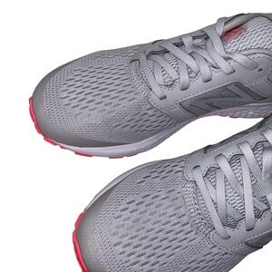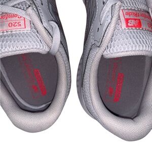 Step into all-day comfort with these New Balance W520LS5 women’s running shoes 👟 in a clean light grey colorway with bright coral/pink outsole accents 💗. This pair is a Women’s Size 9 (Wide Width – D) and comes with the original New Balance box 📦.