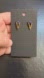 Brand new gold tone with a pyramid shaped blue stone, possibly lapis lazuli, stud earrings