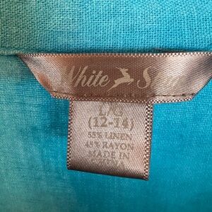 LINEN Vibrant Teal Women's White Stag Casual Button Down Shirt Medium 55% Linen