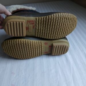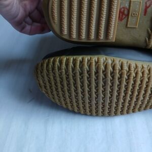 Good pre owned condition. One toe has some light sun fading making it a tad bit lighter than other toe. Minor toe scuffing. No tears or damage.