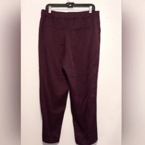 Step out in style with these elegant burgundy pants. Perfect for any occasion. They have an elastic waist with pockets! inseam 29 waist 34