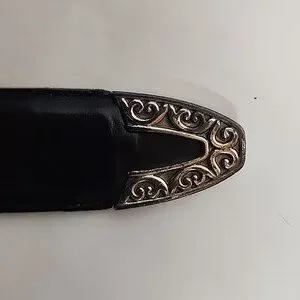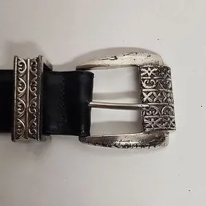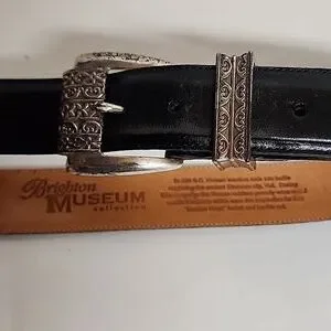 Brighton Museum Collection vintage elegant black leather belt with intricate silver buckle. Stylish and versatile accessory. Pre-owned in good condition. Buckle has some scratches. Please see all pictures. Size large.
