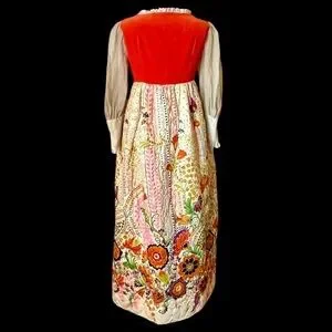 Whether your style inspiration is Renaissance cosplay, sexy wench or 1960s goddess, you’ll feel the part fabulously in this exquisite Empire Waist Maxi Dress: a true vintage masterpiece by Jane Martin II California, 1960s.