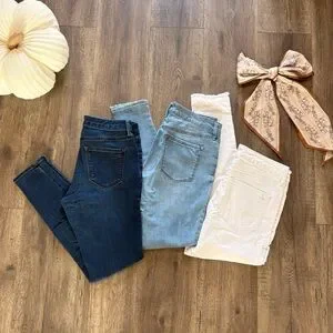 Want more jeans at their lowest price? Your bundle is here ππ₯°π This trio includes three jeans by Jessica Simpson, all size 28 in excellent used condition! Features Adored high rise ankle white stretchy jeans, Kiss Me super skinny jeans in light wash, and Kiss Me super skinny jeans in dark wash.