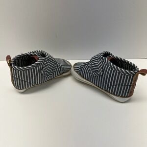 Keywords: baby sneakers, crib shoes, striped shoes, hook and loop, soft sole, infant footwear, prewalker shoes, casual baby shoes, nautical theme, baby fashion, toddler shoes, oshkosh baby