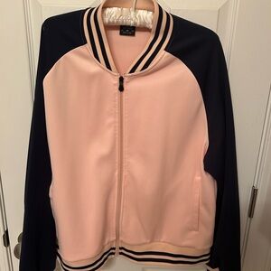 Stylish pink and blue track suit with striped details. Perfect for casual wear. Worn only 3 times
