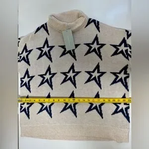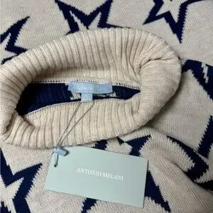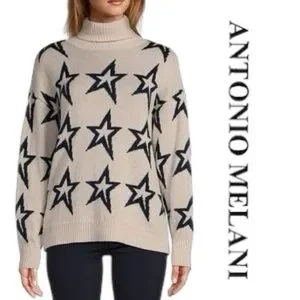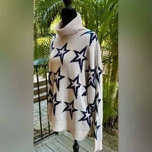 Beautiful star-print turtleneck sweater, new with tags. Soft merino-blend knit, cozy and stylish.