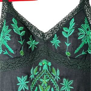 Vintage Sue Wong Linen Dress Embroidered Beaded Fairy Cottage Size 0