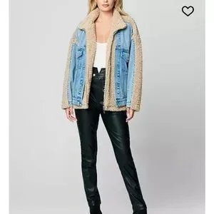 Blank NYC bear hug Blue Denim and Tan Teddy Jacket