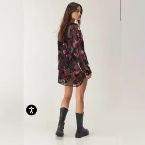Nasty Gal Devore Oversized Sheer Floral Shirt Dress