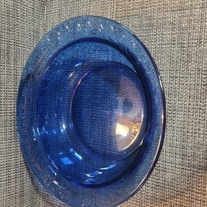 Beautiful large cobalt blue glass bowl with intricate detailing.