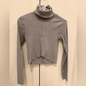 Stylish gray crop top with turtleneck. Ribbed texture for a modern look. Perfect for layering.