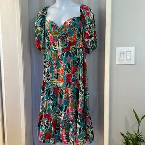 EUC. POLYESTER SILKY FABRIC. SIDE ZIPPER ENTRY. PUFF ELASTIC SLEEVES. ELASTIC TOP RIM FOR CUSTOM COMFORT FIT. SEE PHOTOS FOR MEASUREMENTS. NOT LINED. This dress emulates “FARM RIO”. Spring Boho picnic festival soft girl 60’s 70’s 90’s Y2K 00’s holiday party dressing chunky crochet minimalist maximalist core beachy resort wedding guest bridesmaid date night sexy modest contemporary layer Lagenlook classic trendy layered office preppy cruise bohemian vintage chic beach flirty vacation Coachella floral dress skirt midi western birthday girl classic fall winter engagement bachelorette travel aesthetic vibe retro casual dressy light baddie color block
