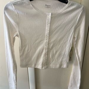 Elegant cream top with delicate lace trim. Ideal for layering.