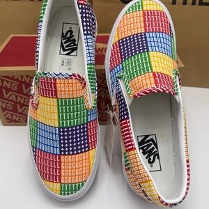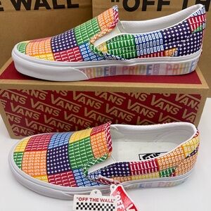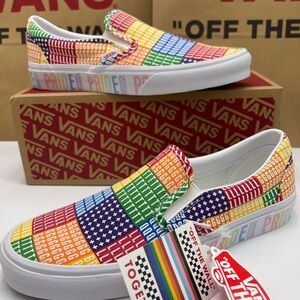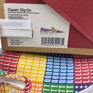 New in the box authentic Vans Women’s Pride Slip-On Shoes - Multicolor Classic Slip-On (Pride) Multi/True White Sneakers