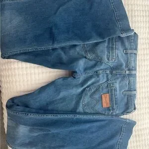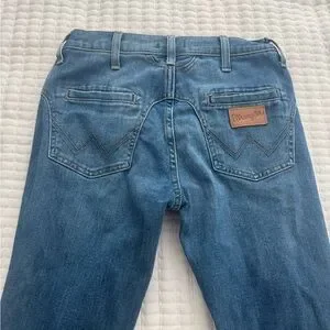 Classic blue denim. Relaxed fit for comfort. Timeless Wrangler style.