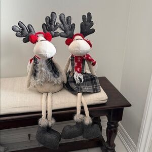 Bring holiday cheer to your home with this adorable reindeer plush set. Featuring charming red and gray accents, these plush figures are perfect for adding a festive touch to any room.