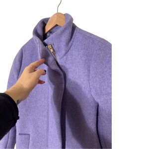 Gorgeous J.Crew Factory lilac colored cocoon-style coat. Material: Shell: 50% wool, 50% polyester, Lining: 100% Polyester. Welt pockets.