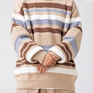 Aelfric Eden Striped Color Blocking Knit Oversized Granpa Sweater