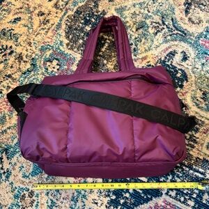 This is the Calpak Luka duffel in plum (discontinued color). With multiple compartments and a luggage sleeve this is your new travel bestie. It fits under an airplane seat. Item is in good used condition with some minor wear as shown in photos. From my personal collection and smoke free home.