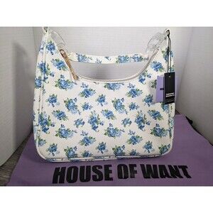 House Of Want Newbie Hobo Shoulder Bag White Blue Floral Vegan Leather NWT