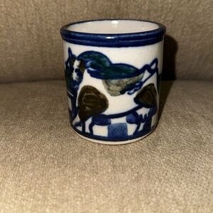 DEBBIE DEAN Small Signed Folk Art Blue/White Pottery Mini Mug