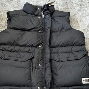 The North Face Men’s Medium Black Sierra Down Vest. Has both a zipper, and 6 snap buttons. Two front pockets that Velcro. Two inside pockets as well. NWT’s. .