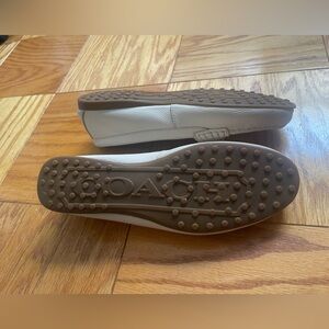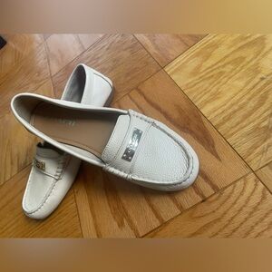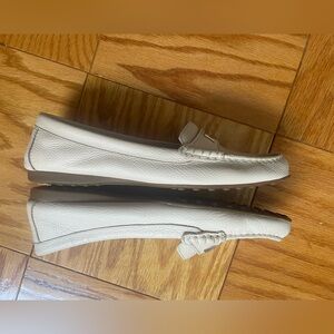 Fredrica moccasin in sand beige with gold tone signature buckle