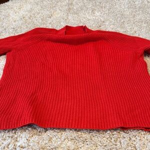 Bright red pullover with ribbed texture. Stylish and comfortable.