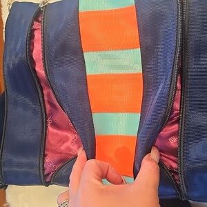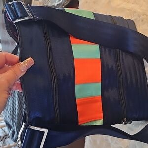 Excellent functional baf . Great for travel. has zipper compartments front and back. super this nylon material easy to wash. adjustable straps 13 1/2 x 10 1/2
