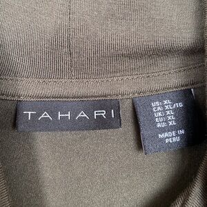 Here is a nice Tahari Green Turtleneck Top size XL in good used condition. Measurements are approximately 27 inch length, 26 inch sleeves and 21 inch width from pit to pit when flat.