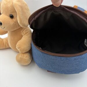 Denim Mini Backpack with Ride Along Plush Dog NWT