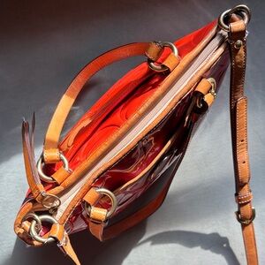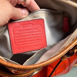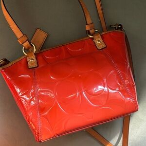 Coach Orange Patent Leather Crossbody Tote Shoulder Bag Zipper Closure Vintage