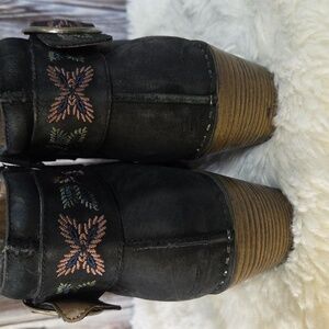 Dansko Leather Black Boots with Embroidered Strap Size 40